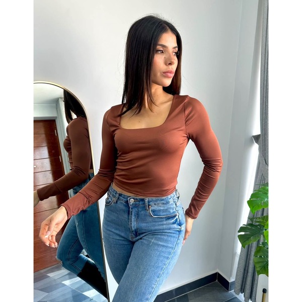 WOMEN BASICA LYCRA BLUSA MANGA LARGA CUELLO CUADRADO