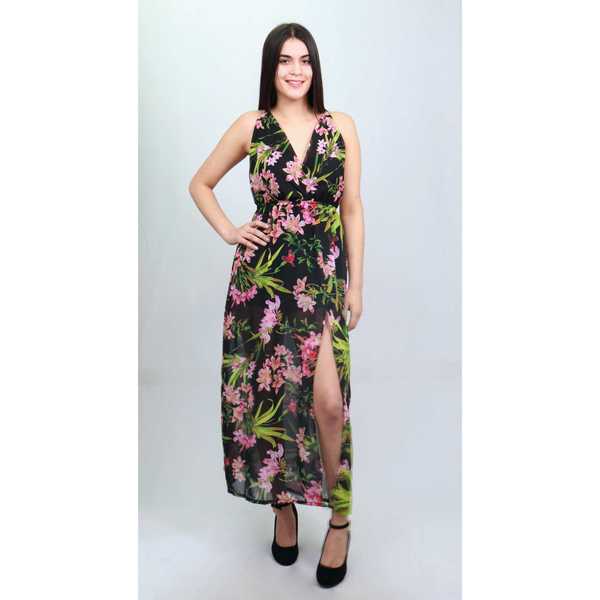 WINNY MAXIVESTIDO GASA FLORES CINTURA ESCOTE